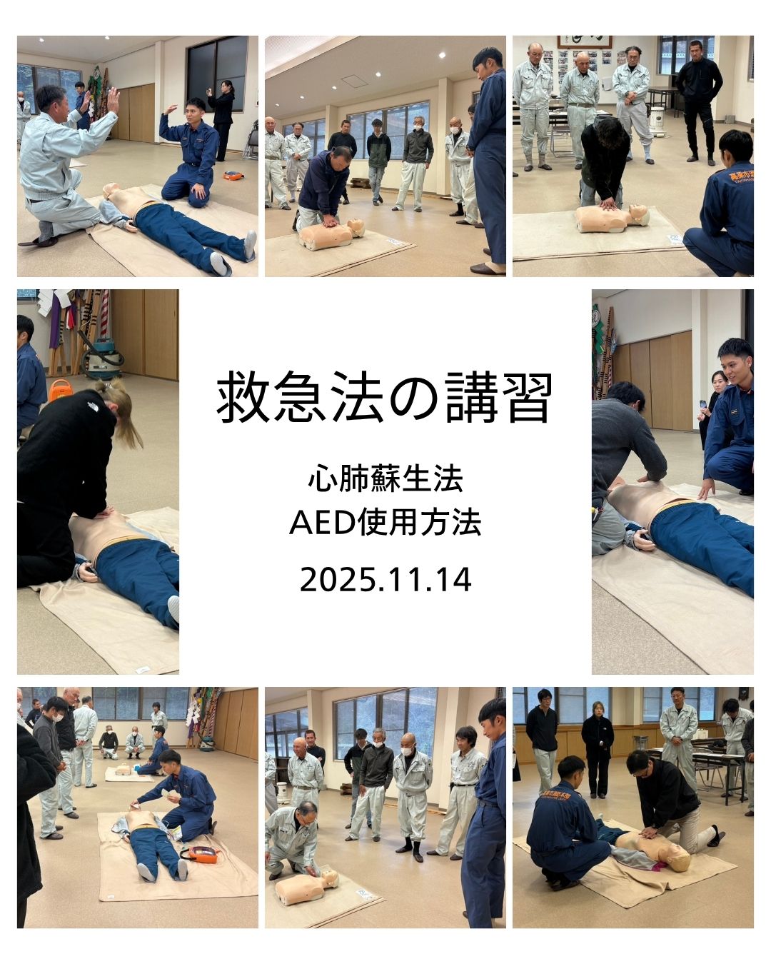 先日、高梁市消防本部の方2名にお越しいただき救急法の講習を行いました。心肺蘇生法とAED使用方法について、ご…